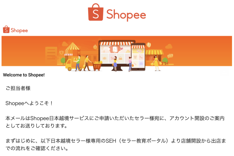 「Shopeeへようこそ!アカウント開設のご案内」というメールが届きましたか?